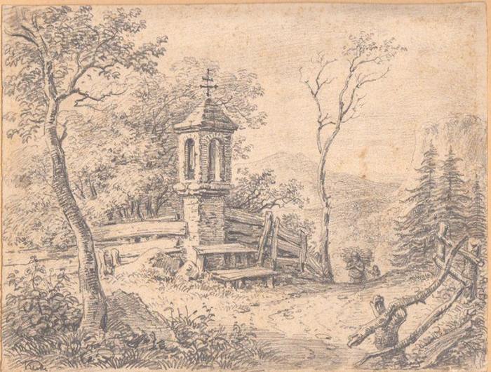 [ca. 1860]. Orig.-Bleistiftzeichnung. 15 x 19, 5 cm. Unter Passepartout.