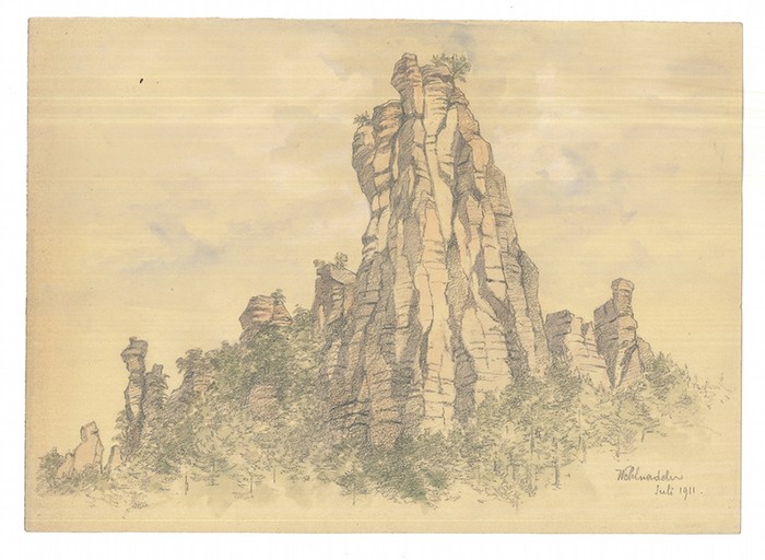 2 Aquarellstudien, davon eine bezeichnet " Wehlnadeln Juli 1911". BEIGABE: Aquarell-Landschaftstsudie, verso bezeichnet "2. IX. (19)37".