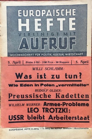 EUROPÄISCHE HEFTE. Wochenschrift für Politik, Kultur, Wirtschaft. Herausgeber: Ernst Fröhlich. Jahrgang 1, 1934, Nr. 14; Jahrgang 2, 1935, Nr. 13, 24 (30. November, letztes Heft der Reihe). (Insgesamt 3 Hefte).