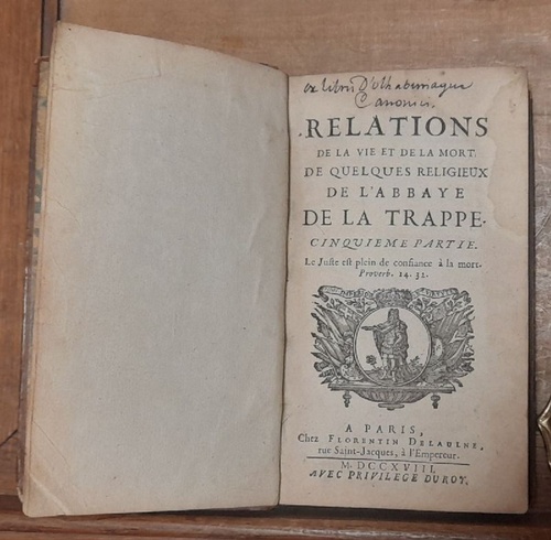 ----------- ANGEBUNDEN: Relations De la Vie et De La Mort Du F. Arsene de Janson, Reliegieux De La Trappe (Nomme dans le Monde Le Comte de Rosemberg, Mort dans L`Abbaye de Buon-Sollazzo en Toscane (Traduite de l`Italien), Chez Florentine Delaulne, Paris, 1722, 76 S., Titelvignette).